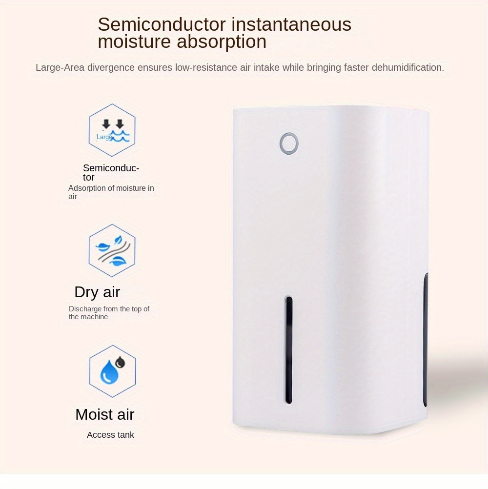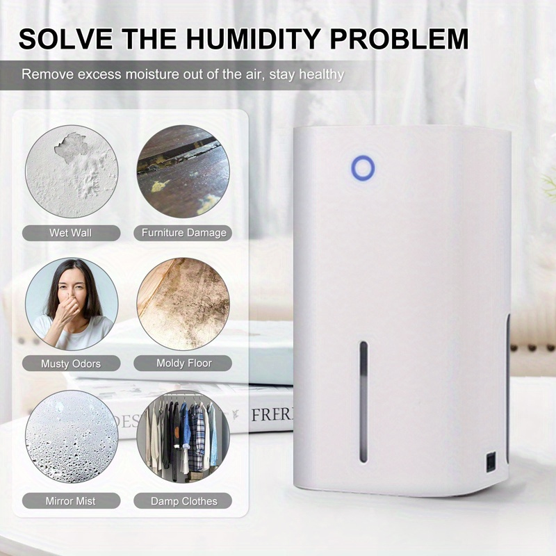 * Water full automatic stop function; Movable transparent water tank, capacity: 850mL* 24-hour dehumidification: 300ml, measured at 30 C,90%RH environment.* With night light function. When the tank is full of water, the LED light will flash, and the LED light will flash automatically when the tank is pulled out